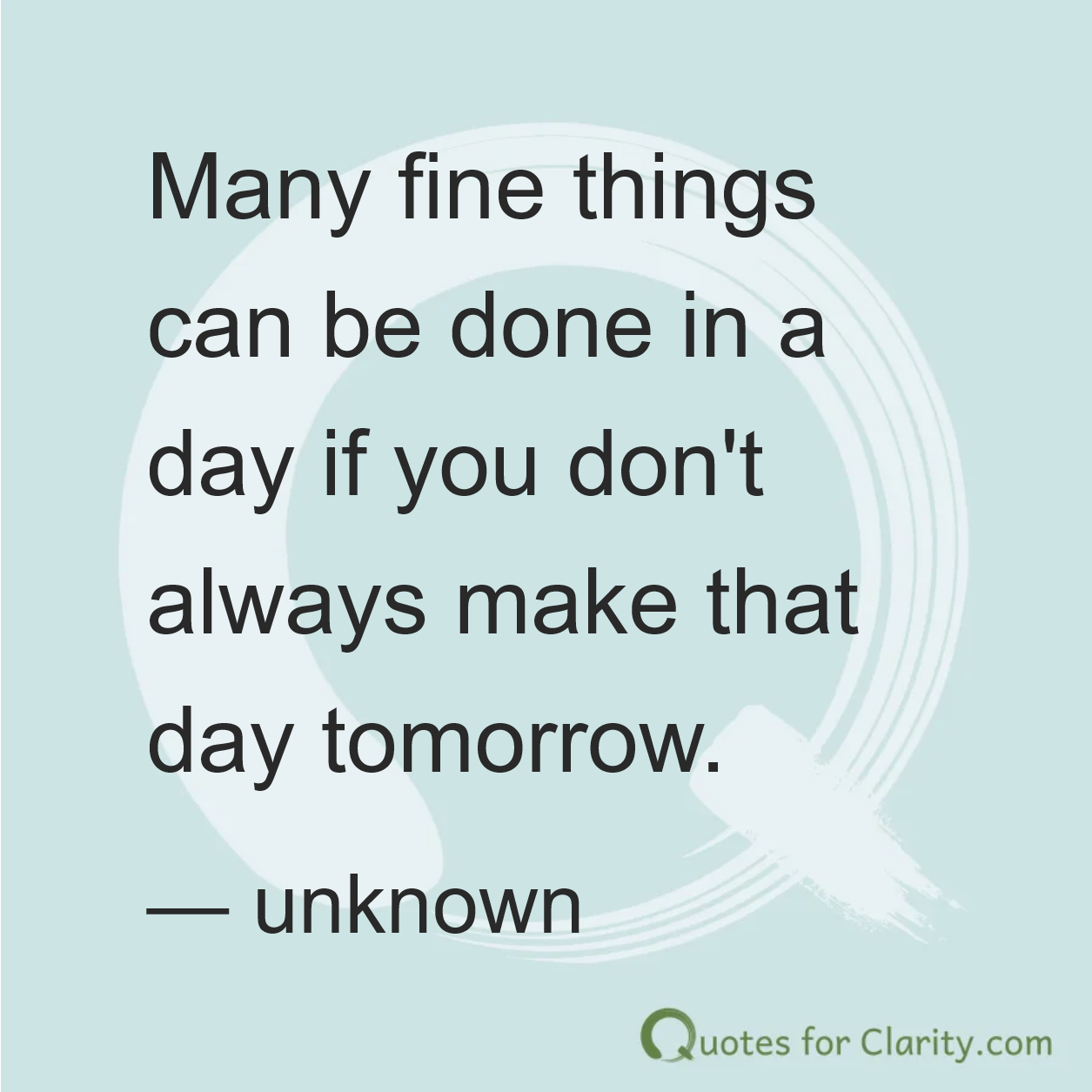 Many fine things can be done in a day if you don’t always make that day tomorrow.